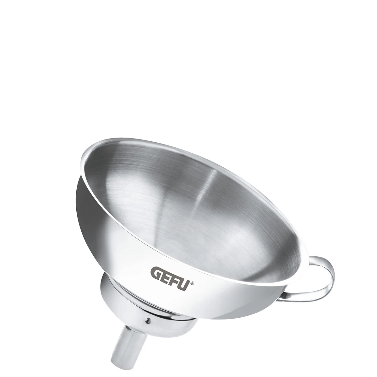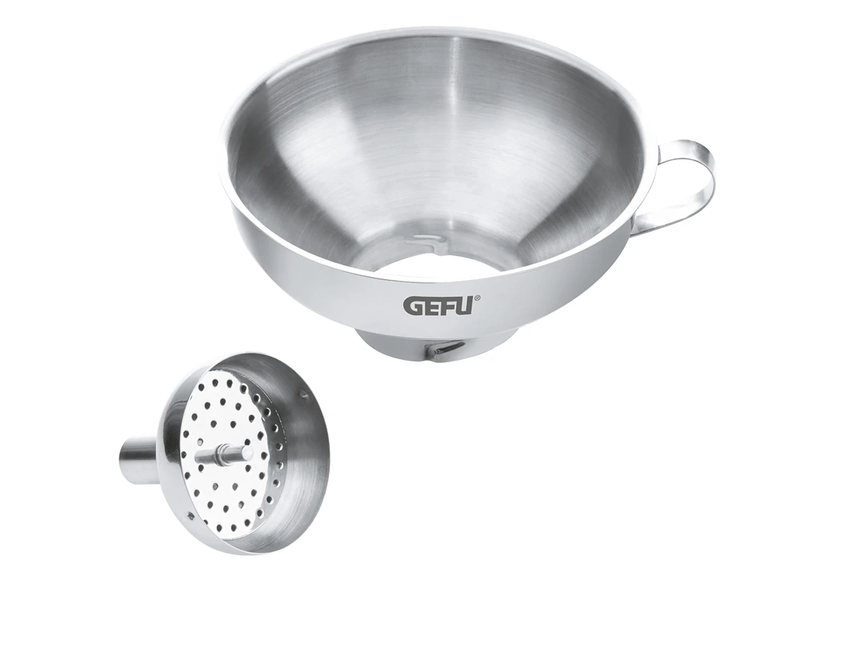 Mit dem Einmachtrichter ist das Abfüllen selbst gemachter Marmelade eine saubere Sache! Und durch den herausnehmbaren Siebeinsatz gelangt der fruchtige Aufstrich kernfrei ins Glas. Mit dem abnehmbaren Reduziertrichter, der durch einen Bajonett-Verschluss sicher mit dem Trichter verbunden ist, können auch Gewürzmühlen oder Salzstreuer bequem und zielsicher befüllt werden. Einsetzbar bei Behältern mit Durchmessern zwischen 1,5 und 5,5 cm.