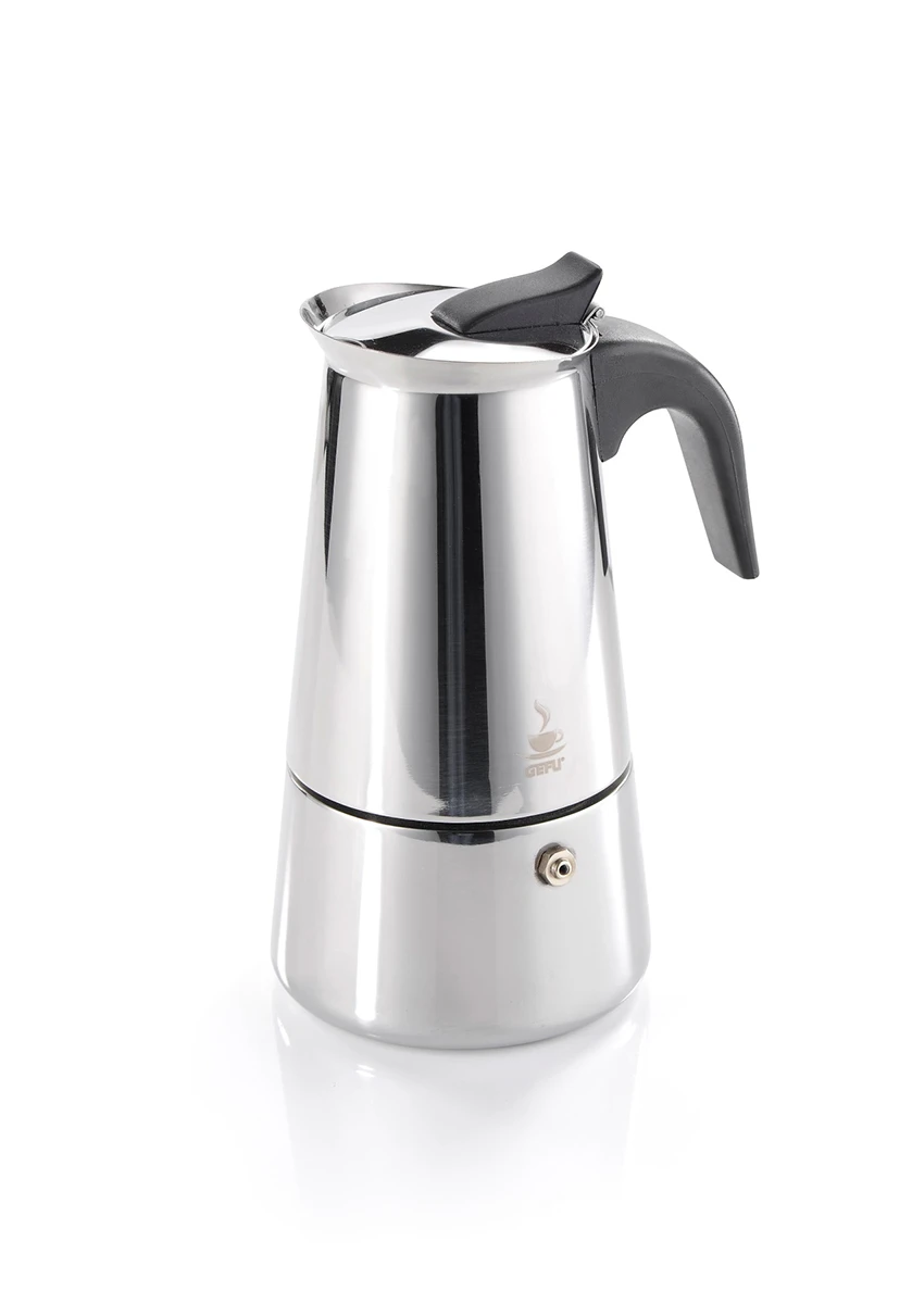 Frisch aufgebrühten Espresso, wie er in den meisten italienischen Familien zubereitet wird, gibt’s mit dem Espressokocher EMILIO aus Edelstahl.