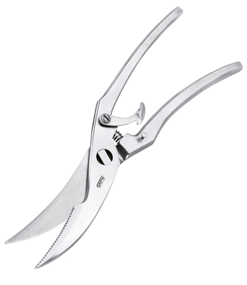 Mühelos und sauber zerteilt die Geflügelschere das Bratgut in die gewünschten Portionen. Ansprechendes Design, scharfe Schneidzähne in Profi-Qualität.