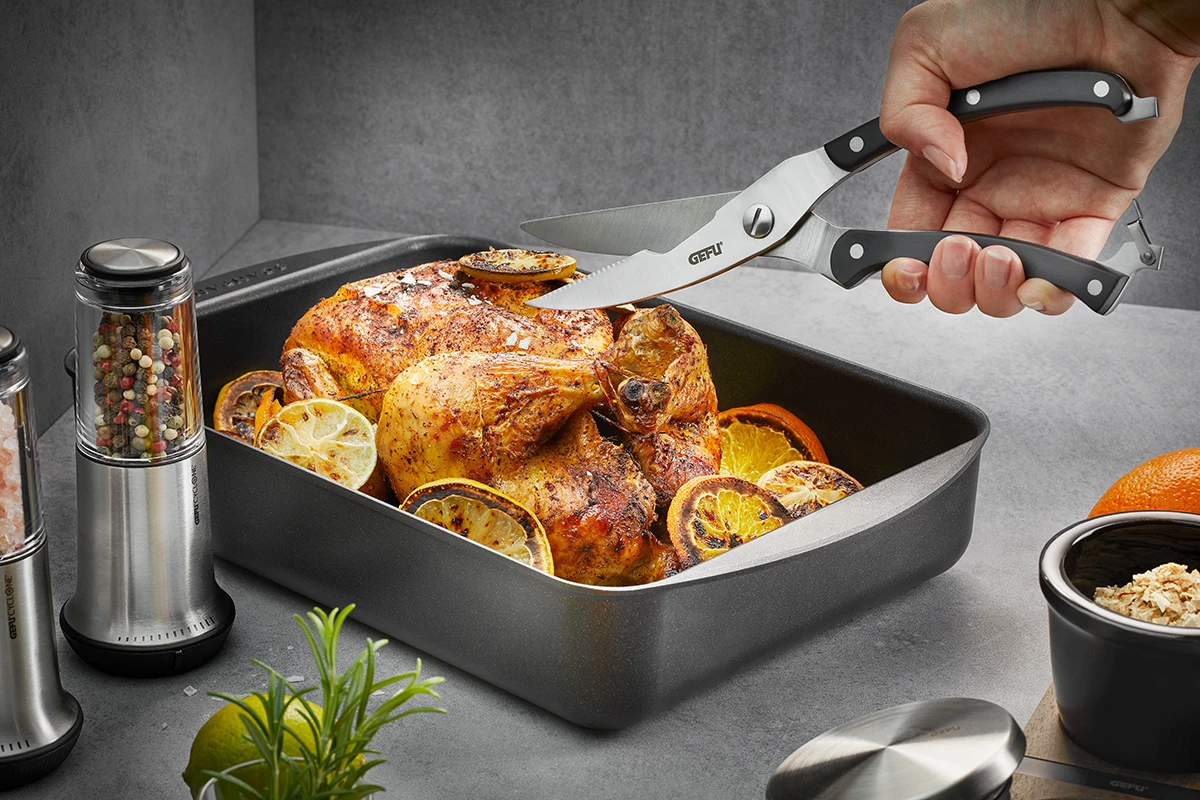 - extrascharfe Schneidflächen zum mühelosen Zerteilen von Geflügel