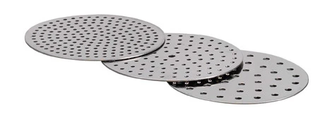 • zwei Lochscheiben (2,5 mm, mit 102 und 186 Löchern) zum Pressen von Kartoffeln, Gemüse und Obst