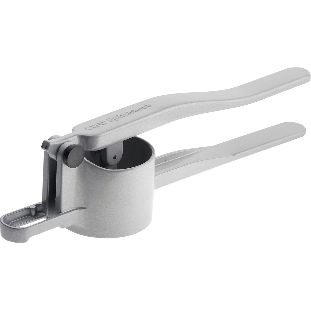 GEFU Kartoffel- und Spätzlepresse »Spätzleboub« aus beschichtetem Alu-Druckguss gefertigt in ergonomischer Form für optimale Handhabung. Dank großzügiger Pressarme ist geringer Kraftaufwand erforderlich. Großes Fassungsvermögen. Mit Spezial-Lochbild für Spätzle »wie hausgemacht«. Auch einsetzbar als Presse für Obstsäfte, Kartoffelbüro, Spaghetti-Eis. Zerlegbar für leichte Reinigung. Spülmaschinengeeignet. Gr. 41 x 9 x 11 cm.