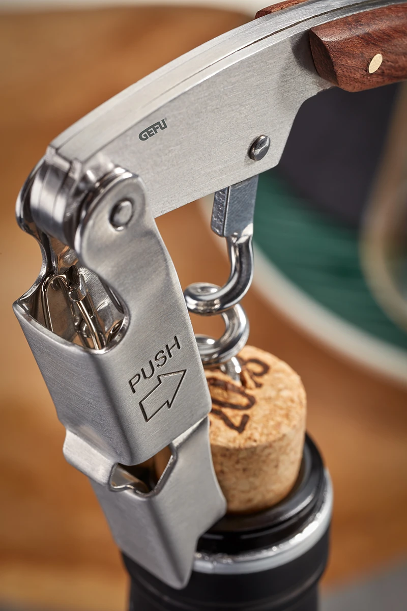 • Edelstahlspindel mit offener Seele• zweistufiges Hebelsystem für müheloses Entfernen aller Arten von Weinkorken• praktischer Kapselheber • ergonomische Form für einfache und sichere Handhabung