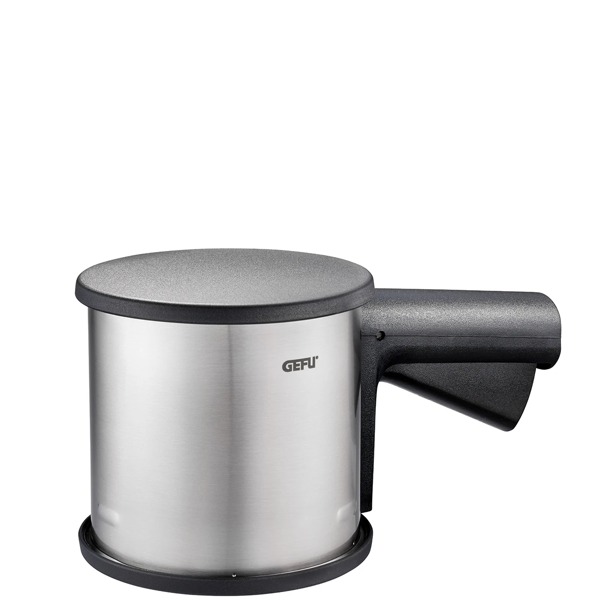 Mit dem praktischen Einhand-Sieb SIVA lassen sich Mehl, Puderzucker, Kakaopulver und weitere trockene Backzutaten besonders leicht und gleichmäßig sieben. Perfekt zum gleichmäßigen Verteilen von Mehl auf allen Arbeitsflächen, zum professionellen Dekorieren von Kuchen, Torten und Gebäck oder für leckere Cappuccinohauben.