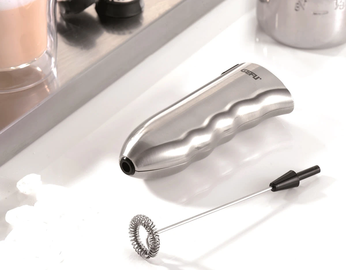 Der batteriebetriebene Milchaufschäumer sorgt mit einer max. Drehzahl von 16.000 U/Min für ein perfektes Quirlergebnis. Er ist das ideale Werkzeug zum Aufschäumen von Milch und sorgt für eine feine Crema bei vielen anderen Genüssen wie z.B. Saucen.