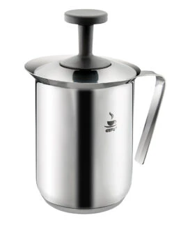 Schnell zubereitet wird Milchschaum für Kaffeespezialitäten durch den doppelten Siebeinsatz des Milchaufschäumers. Aber auch heiße Schokolade oder Chai-Latte lassen sich im Nu vermischen. Durch den Sandwichboden ist der Milchaufschäumer für alle Herdarten geeignet – aber auch kalte Milch kann mühelos verarbeitet werden. Einfach Milch einfüllen, Deckel aufsetzen und durch die Auf- und Ab-Bewegung des handlichen Griffs verwandelt sich Milch in cremig-feinen Schaum für Latte Macchiato & Co.!