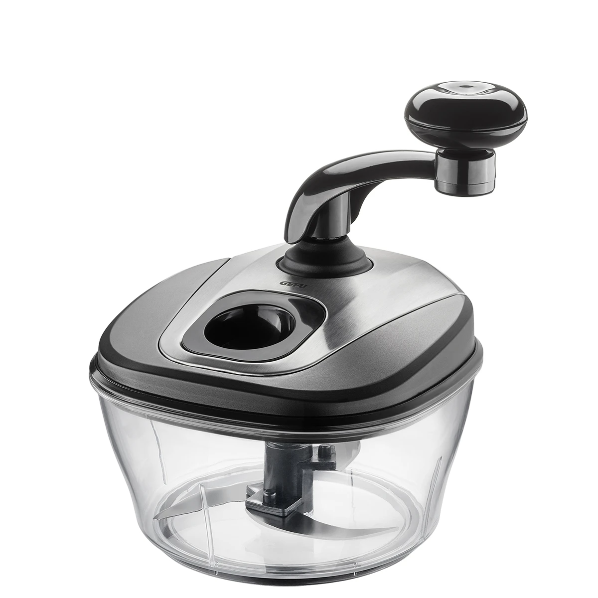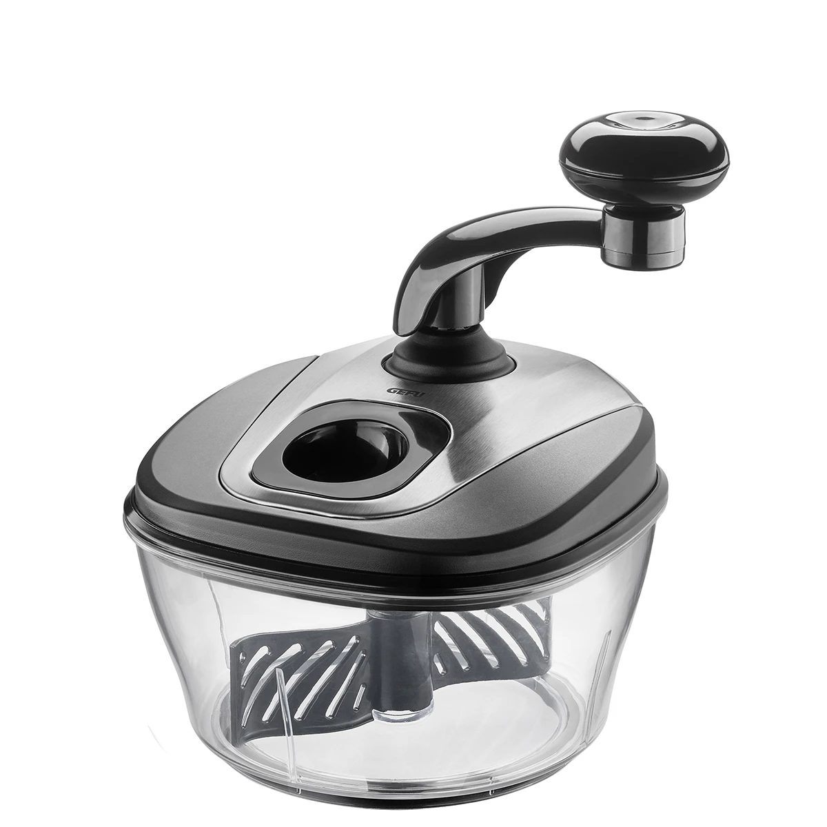 Mit dem Multizerkleinerer SPINO kann man ganz ohne Kabelanschluss richtig was erleben! Er schafft mit seiner handbetriebenen Turbokurbel und den austauschbaren Einsätzen fast alles, was sonst nur elektrische Küchenmaschinen zu bieten haben. Der extrascharfe Schneideinsatz hackt mühelos Nüsse und zerkleinert Zwiebeln, Obst, Gemüse für den nächsten Eintopf oder die Tomaten für pikante Salsas. Mit dem vielseitigen Rühr-Einsatz gelingen wunderbar cremige Desserts, kreative Salatdressings und Dips, luftige Teigmischungen und Omeletts. Zum Zubehör des SPINO gehört ebenfalls ein herausnehmbarer Eitrenner, der das Eiweiß für süße Baisers bequem und sicher vom Eigelb für die goldgelbe Sauce Hollandaise separiert.