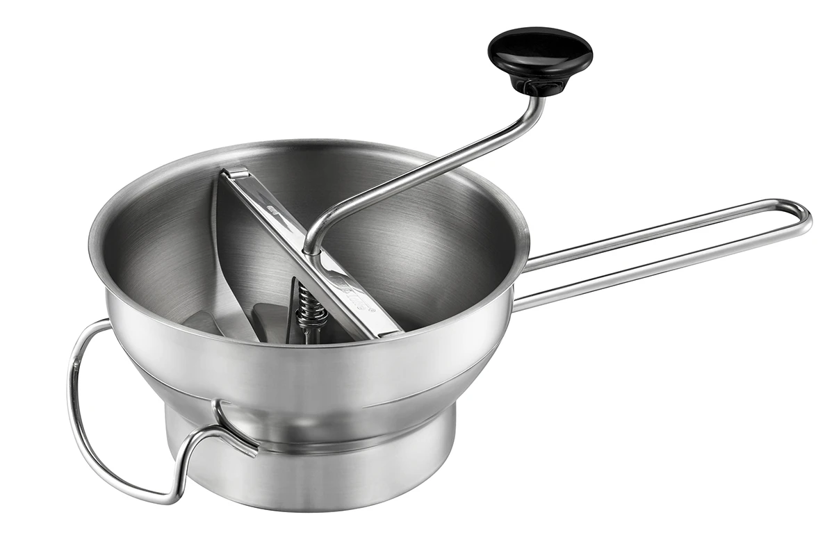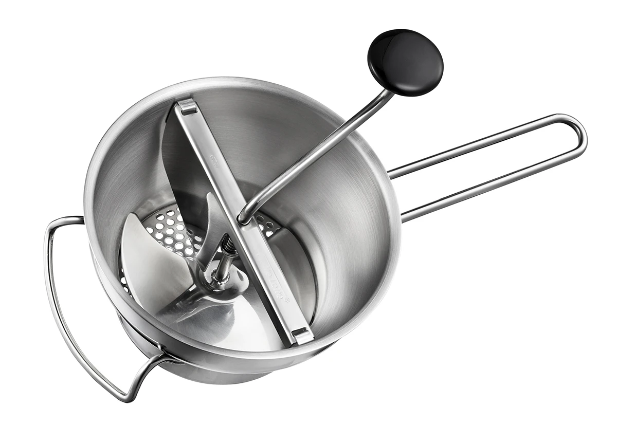Die FLOTTE LOTTE® ist ein echter Küchenklassiker zum Passieren und Reiben von Obst und Gemüse! Von GEFU entwickelt und mit Abstreiffunktion ausgestattet, ist sie der ideale Partner, wenn feine Süppchen, frischer Babybrei oder delikate Gemüsepürees zubereitet werden sollen. Unterschiedliche, ganz einfach austauschbare Lochscheiben assistieren bei der Herstellung von Gelee & Co.