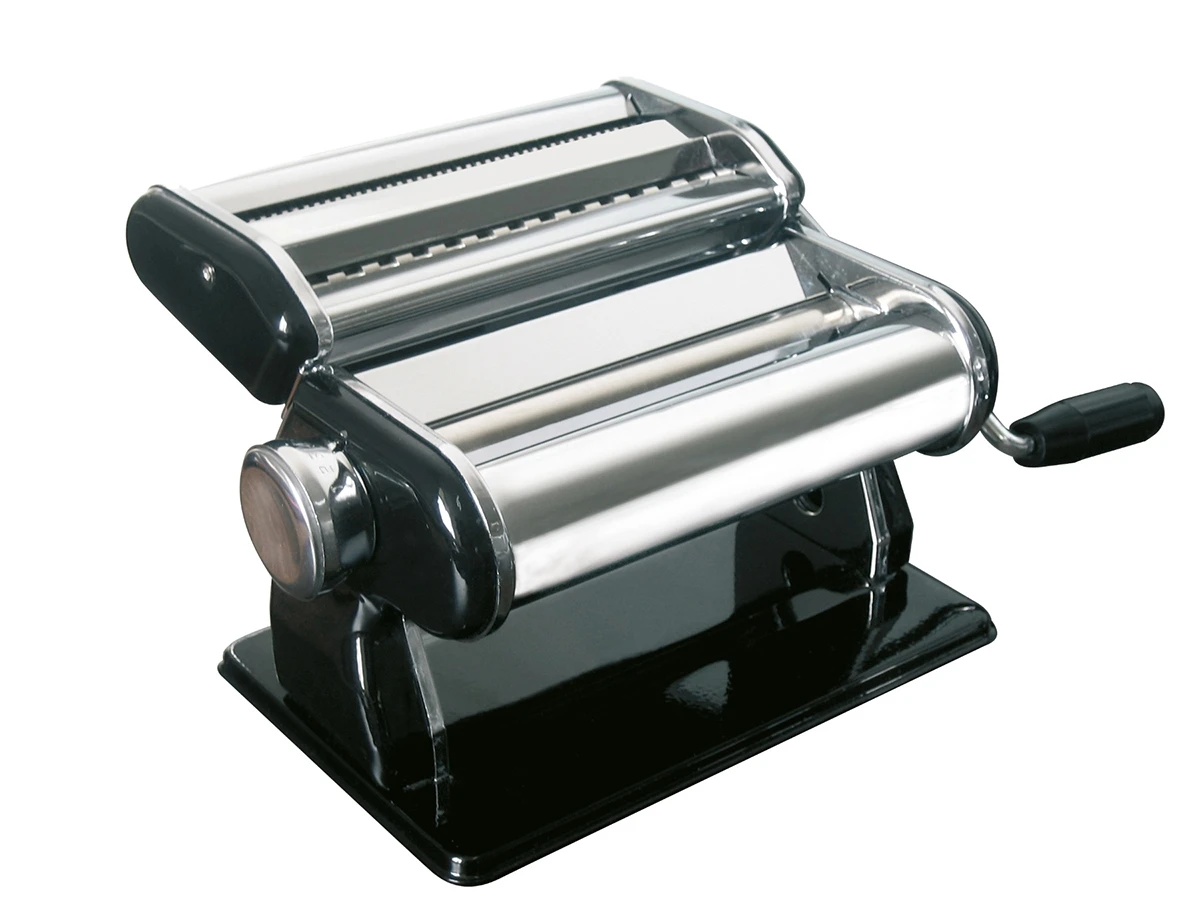 PASTA PERFETTA NERO ist die Pastamaschine für die perfekte Herstellung von original hausgemachter Pasta. So lassen sich mit ein paar Handgriff en drei verschiedene Sorten von Teigwaren herstellen: Tagliolini, Tagliatelle und Lasagne. Dank der Walzen aus Leichtmetall mit einer hochwertigen Oberflächenveredlung lassen sich noch gesünder und reiner schmeckende Teigbahnen herstellen.