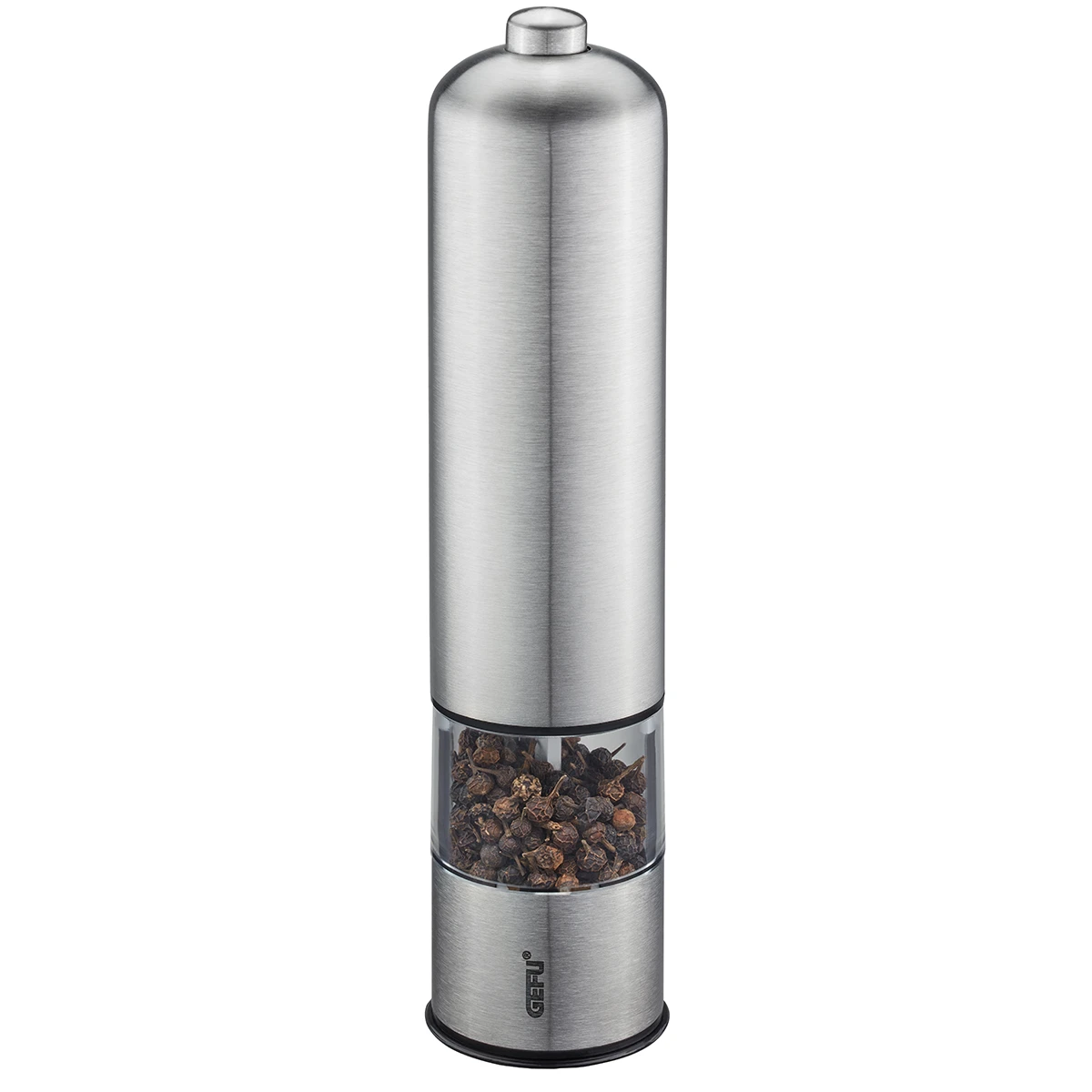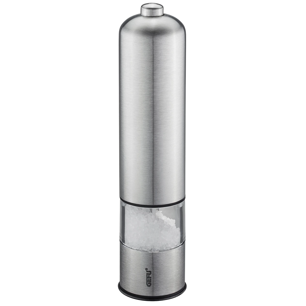 • stufenlos verstellbares Keramikmahlwerk• müheloeses Vermahlen per Knopfdruck• integrierte LED-Beleuchtung• inkl. 4 AA Batterien• Vorratsbehälter für 40 g Pfefferkörner oder 80 g Salz