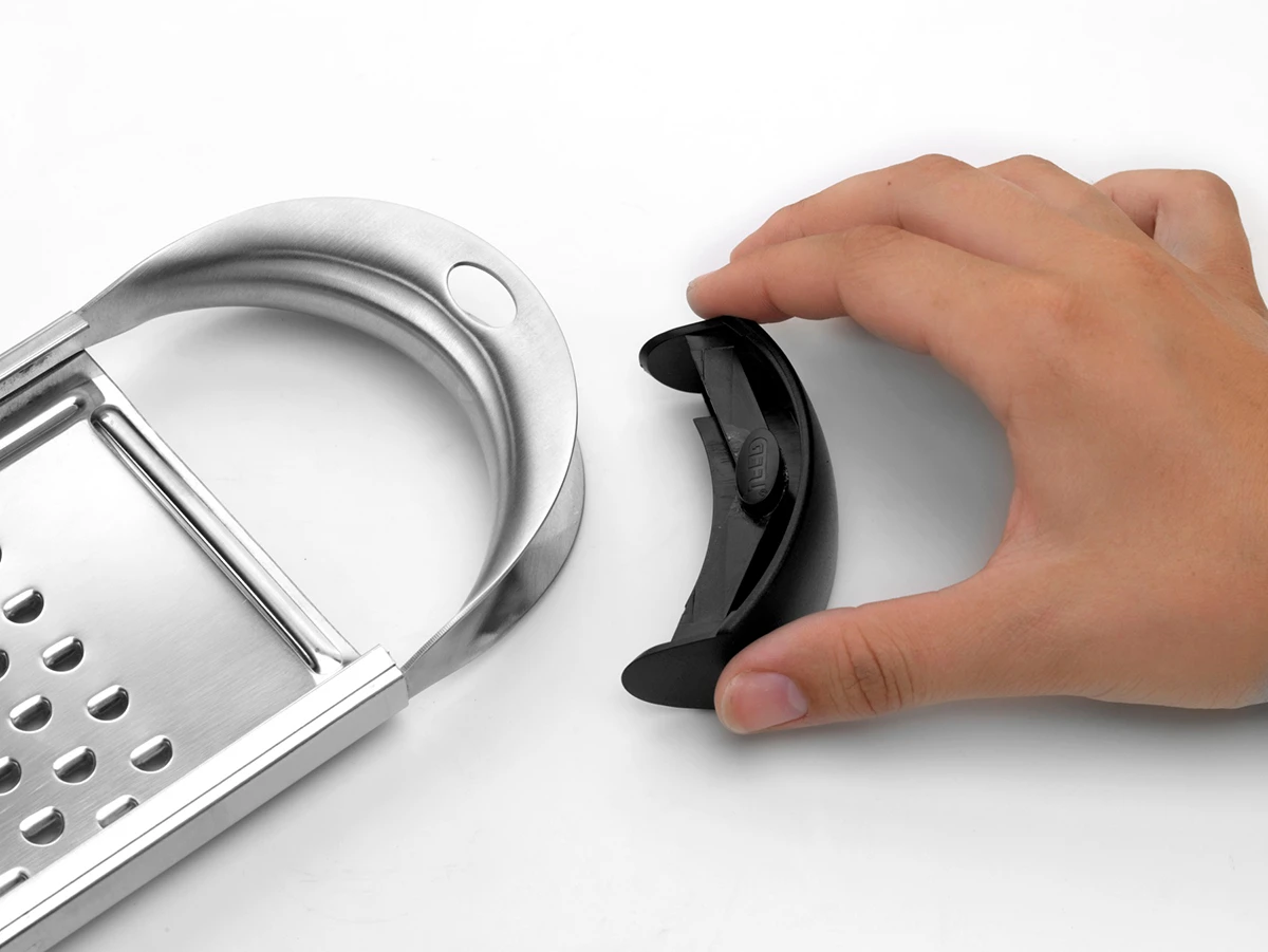 Für die mühelose und schnelle Herstellung von original Spätzle. Mit Teigschieber aus rostfreiem Edelstahl, poliert. Die Topfauflage verhindert das Abrutschen des Spätzlehobels und sorgt für einen sicheren Halt am Topfrand. Der neue ergonomische Edelstahlgriff liegt gut in der Hand. Zur Reinigung lässt sich der Kunststoffeinsatz im Griff entfernen.