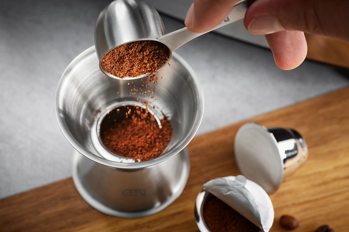 Brew it yourself – Mit dem Profiset CONSCIO lassen sich die wiederverwendbare Kapseln im Handumdrehen mit dem Lieblingskaffee befüllen. Einfach den Trichter auf die Kapsel setzen, mit dem Messlöffel befüllen und den Kaffee dann mit dem praktischen Tamper leicht andrücken.