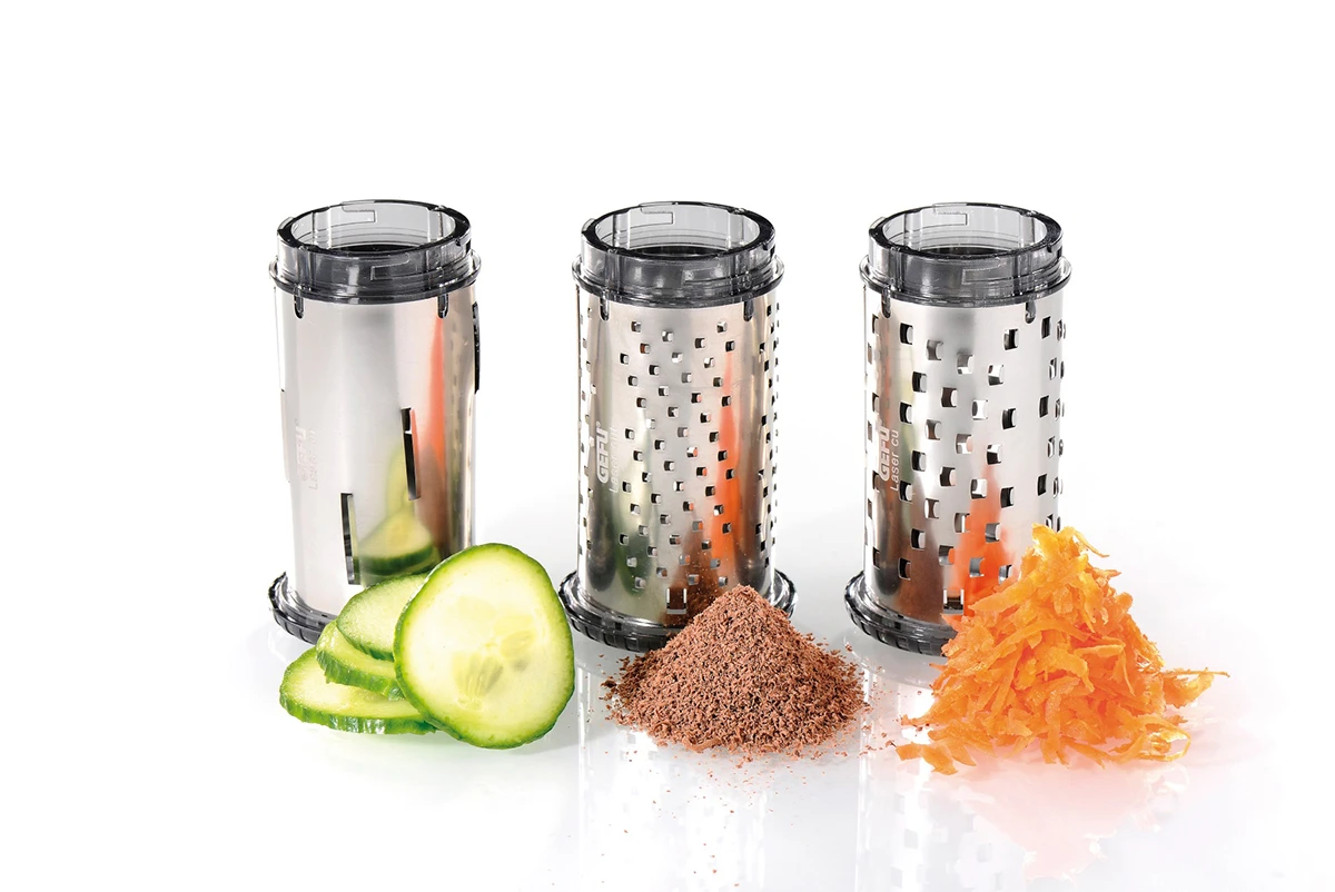 Mit drei auswechselbaren Reibtrommeln ist die Trommelreibe vielseitig einsetzbar.